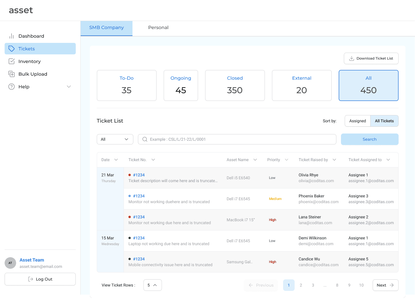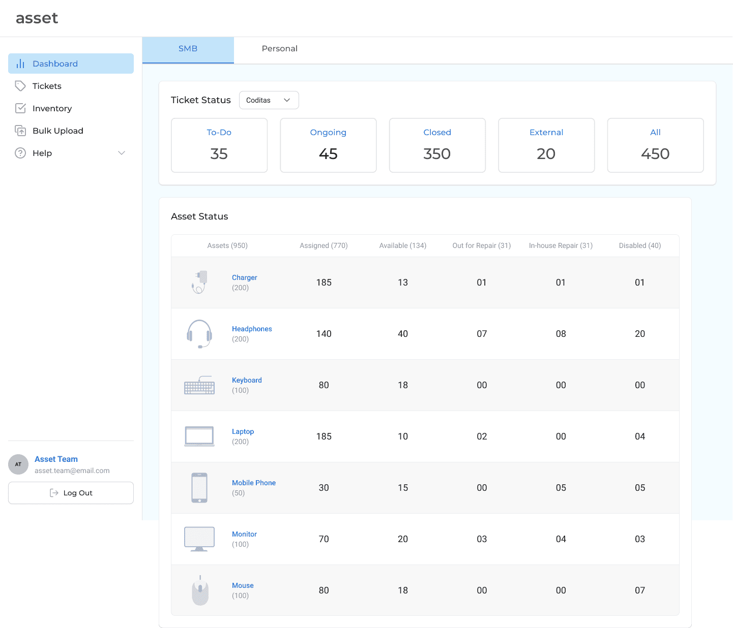Asset is an Asset Management Software targeted towards SMBs to help the Asset Management team track assets and improve communication between employees and the IT asset team. The software allow employees to raise tickets and get quick updates on their asset status and IT teams to manage, track and inventorize assets.